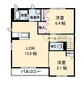 洋間6.4畳・洋間5.1畳・LDK13.8畳